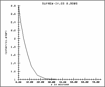 plot.1d x.v=5.0 x.ma=75.0This shows the penetration into the bulk of the interstitials. The penetration is limited by both the bulk recombination of the interstitials with vacancies and the trapping mechanism.