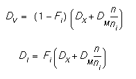 where CT is the total chemical concentration of antimony, CV and CI are the vacancy and interstitial concentrations, the superscript * refers to the equilibrium concentration, DV and DI are the diffusivities with vacancies and interstitials, and n and ni refer to the electron concentration and the intrinsic concentration respectively. The diffusivities are given by: