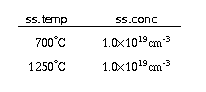 where CT and CA are the total chemical and active concentrations of tin, C V and CI are the vacancy and interstitial concentrations, the superscript * refers to the equilibrium concentration, DV and DI are the diffusivities with vacancies and interstitials, and n and ni refer to the electron concentration and the intrinsic concentration respectively. The diffusivities are given by: